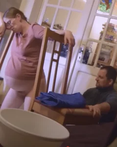 Mini résumé : Une naissance, dans la baignoire, en couple uniquement, capturée par la caméra posée. Le père et la mère attrape tous deux bébé, à l’unisson.